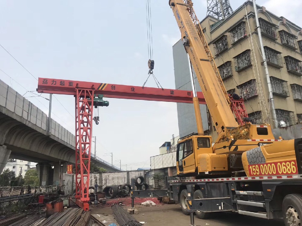 創(chuàng)業(yè)建材小型龍門(mén)吊安裝